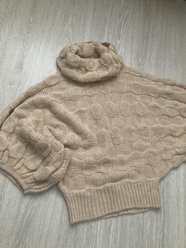 Цікавий светрик з широкими рукавами довжиною 3/4. Воротник-хомут. Пряжа схожа на вовну. На розмір S-M