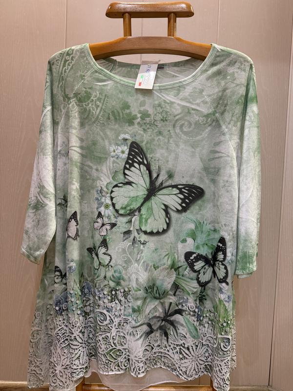 В наличии красивая кофточка фирмы ITALY. Размер не указан...по замерам идёт на 18-20. Состав: 50% вискоза и 50% полиестер...ткань мягкая, приятная к телу и хорошо тянется. Полуобъём в груди - 62 см и ещё тянется Длина - 82 см Длина рукава от ворота - 55 см Полуобъём в бедрах примерно 80 см и ещё тянется