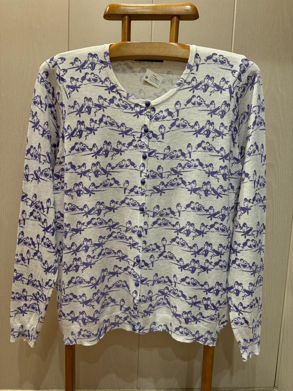 В наличии красивая кофточка фирмы M&S. Спереди застёгивается на пуговки. Размер указан 18...но красивей сядет и на 16. Состав: 83% вискоза и 17% полимид, ткань очень мягенькая и приятная к телу. Полуобъём в груди - 57 см и ещё тянется Длина - 62 см Плечи -39 см Длина рукава - 65 см Полуобъём в бедрах - 54 см и ещё хорошо тянется