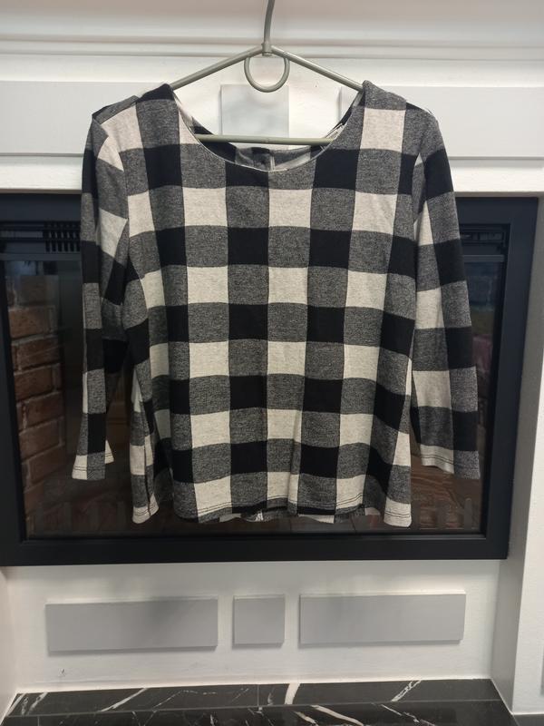 Дуже мягкий свитер в клетку. Рукав идет троговый. По спинке пуговицы. В отличном состоянии. На размер М.