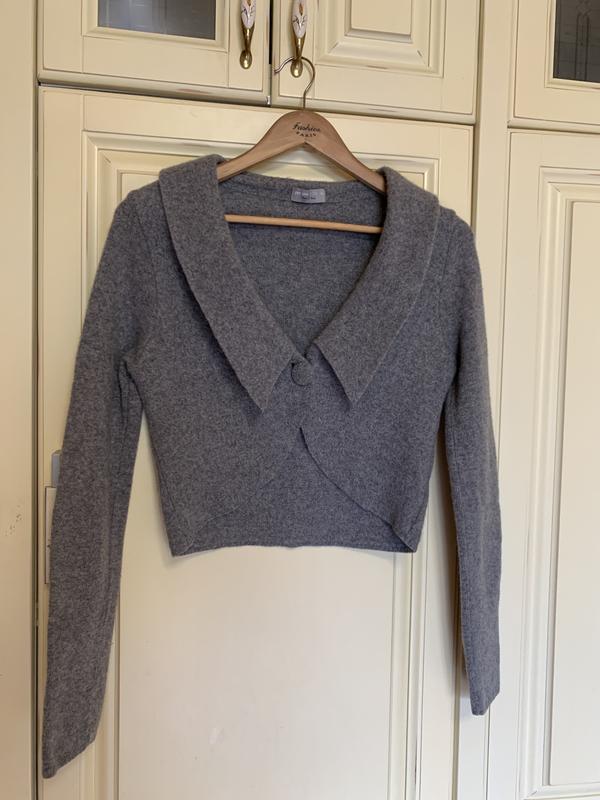 Укорочена кофтинка. Итальянского производителя. Интересным воротником и оригинальной застежкой. В составе шерсть. М размером.