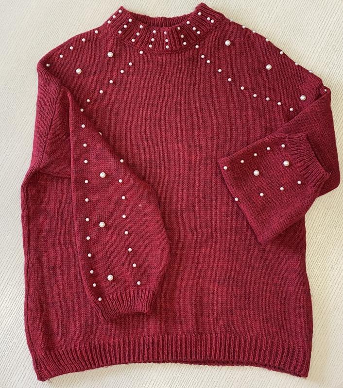 Затишний, теплий светр із намистинами білого кольору, які якісно закріплені. Підійде як під діловий образ, так і під джинси. Ідеальний варіант на сезон осінь-зима. Колір: насичений бордо. Стан: ідеальний. Виробник - Італія. Детальніше про склад - на бірці. Розмір - S/M