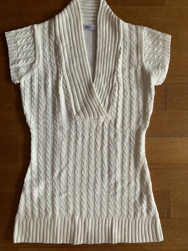 Кофта-жилетка с коротким рукавом белая в язкая с V - образным воротником бренд OKAY размер 38/М. Длина изделия-73 см, Ног-45 см, Нот-37 см. Состав - полиакрил. Смотрите другие свои объявления, приятные цены, разбрродаж