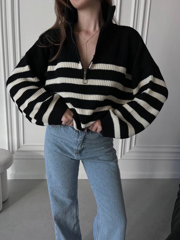 Объемные свитера в полоску материал: акрил 77%, полиэстер 23% размер свободный цвета: черный, беж длина: 57 см, рукав от горловины 69 см, ширина 60 см риа 00430