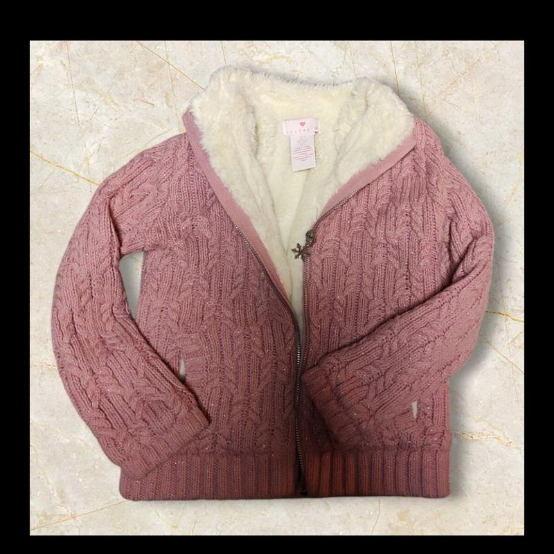 Кофта -вязка с люриксом в середине искусственный мех на молнии. Кофта очень теплая, есть карманы. Цвет куриная роза. Разми6 на 4-5 рочков, рост до 110 см.
