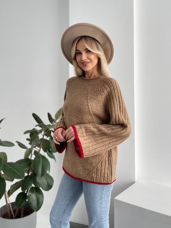 Вязаный оверсайз свитер - идеальное дополнение к джинсам, юбкам и базовым брюкам. Поможет вам создавать самые разнообразные образы в холодную погоду! Производитель: Турция Размер: универсальный Замеры: Длина 60см Обг 106см Рукав от шеи 68см №3047