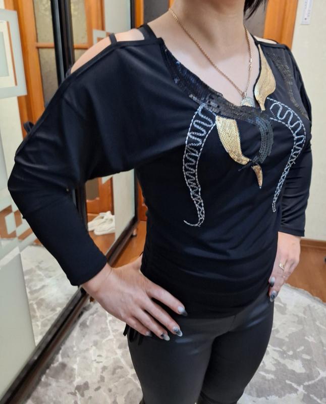 Кофта женская с пайетками в идеальном состоянии. По бокаж стягивается, плечики и рукав к локтя открыт.