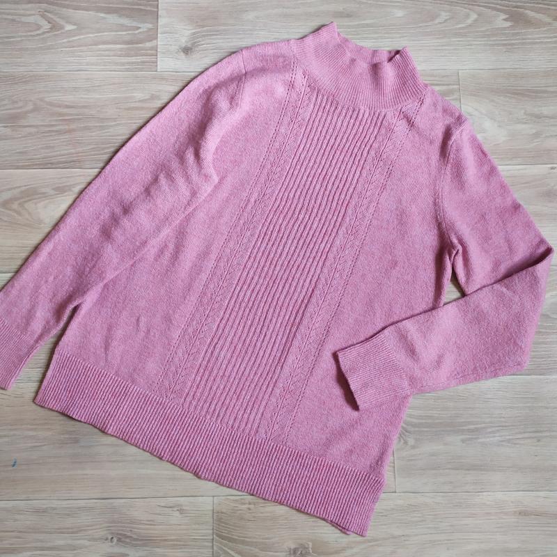 Продам пролет, мягкий свитер, размер L, горловина стойка, цвет нежно розовый. Купила на оф.сайте, не носила, бирки нет. Продаю по себестоимости, за столько и купила Пог 51 по низу также 53 см, тянется длина по спинке 65 см длина рукава 63 см