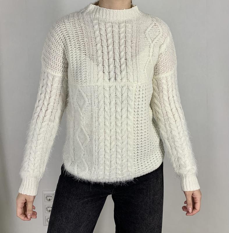 Светр молочного кольору Размер 38 М В составе 13% шерсть 😍,49% акрил, 38% полиамид Длина 60 см, длина рукава от горловины 72 см, полуобхват груди 51 см Состояние идеал Одето на размер Л, рост 167