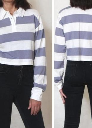 Стильная женская кофточка поло, поло в полоску. Состояние идеальное. Состав: 52 %вискоза, 28% полиэстер 20% нейлон. Пог. Пог. 59 см. По низа 58 см. Длина рукава от горловины 76 см. Длина по спинке 49 см.