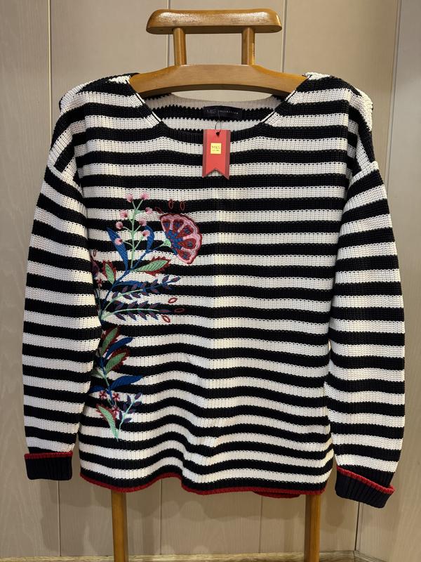 В наличии красивый свитер фирмы M&S. Размер указан XL. Состав: 100% коттон. Новый. ПОГ-крой свободный...65, длина спереди-60, по спинке немного длинней-64, плечи приспущенные-60, длина рукава-50, ширина по низу-61.