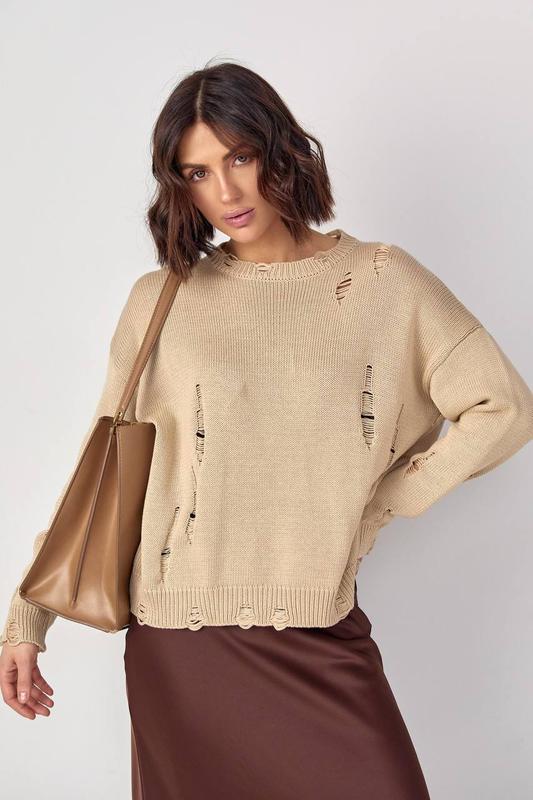 Светр Модель 7106 (амур) Розмір 42-50 Заміри : ПОГ 53см Довжина рукава від плеча 77см Довжина 57см Тканина котон50%, акрил 50% Крута модель з дирками, котон , не парить, не коле, ідеальна якість і посадка Кольори:беж, сірий ,чорний Виробник Туреччина
