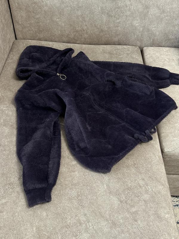Дуже тепла та зручна кофта в баклажановому кольорі. Всередині хутро. Матеріал - альпака. Має блискавку в золотому кольорі. Внизу на затяжках, на рукавах манжети. Є капюшон. Розмір ONE SIZE Обхват грудей - 61 см. Довжина кофти- 60 см. Довжина рукава - 59 см. Доставка новою поштою за передоплатою 150 грн.