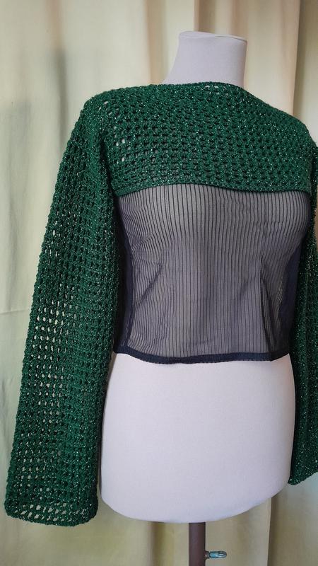 Хендмейд, моя робота гачком. Также связуй такой под заказ под ваши настройки и предпочтения по цвету. Обращаться в тг imverysony Крутое дополнение к гардеробу, можно одевать поверх топов, как на фото, или же под футболку Ширина по линии плеч: 41 см (плечи чуточку спущенные) Ширина: 41 см (лежить над грудьми) Длина спереди: 17 см Длина сзади: 17 см Длина рукава от шва: 54 см (рукав удлиненный близко к середине пальцев) Параметри манекену: 86/69/91 Материал: акрил Дополнительные фото/информации с радостью дам.