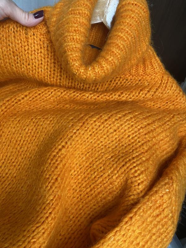 Свитер яркого апельсинового цвета, Очень теплый, классный, мягкий, не колется, состояние нового, одет один раз. Размер S, можно М, оверсайз.