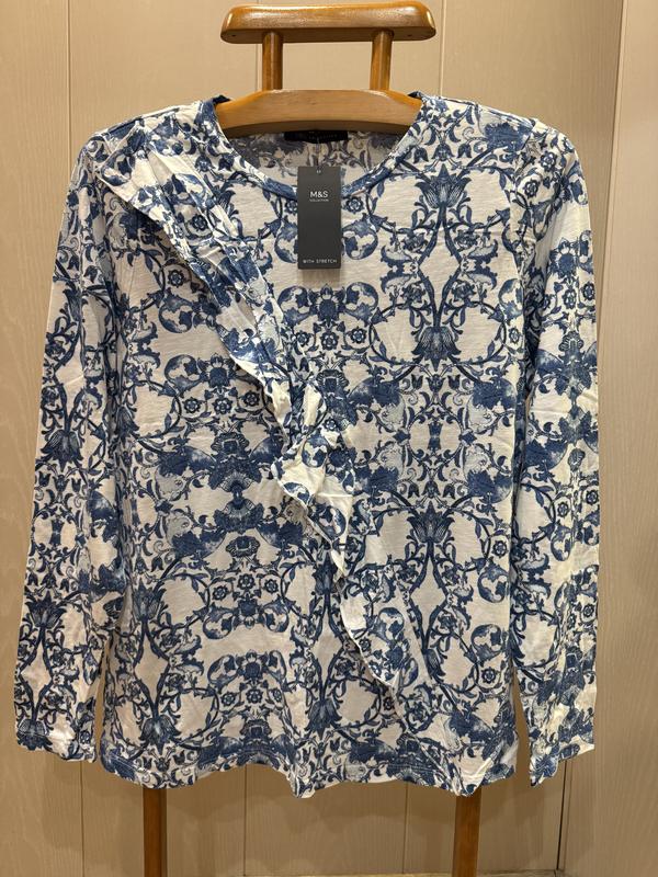 В наличии красивая кофточка фирмы M&S. Размер указан 18, но по замерам лучше будет на 16. Состав: 54% вискоза и 46% коттон...ткань очень мягкая и приятная к телу, хорошо тянется. ПОГ-56+ещё хорошо тянется, длина-68, плечи-40, длина рукава-66, ширина по низу-58+ещё тянется.
