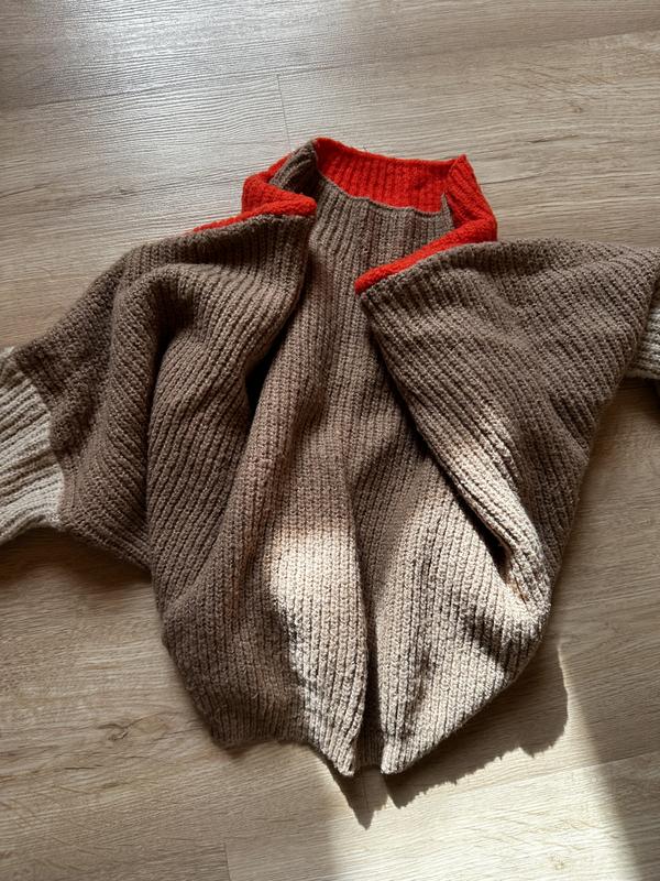 Стильный теплый свитер в актуальных модных цветах: сзади оранжевый, спереди бежевый. Новый, но без броков. Не секонд! Купила для себя, сняла бирки, выстилала и пролежал в шкафу год. Гортайте детальные снимки. Свитер укороченный, идеально на размер XS/S- М за счет свободного кроя и ширины. Широкий. Очень мягкий, приятный к телу