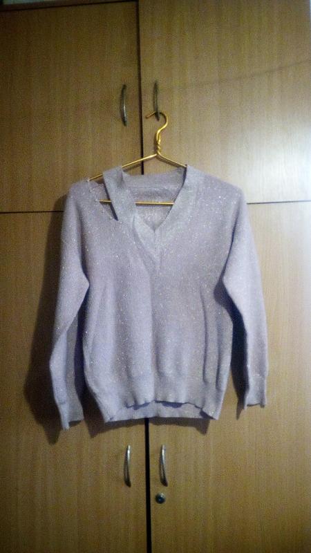 Оригинальный свитерок с люрексовой ниткой, длина от ворота 61, 5 см, рукав от плеча 61, 5 см