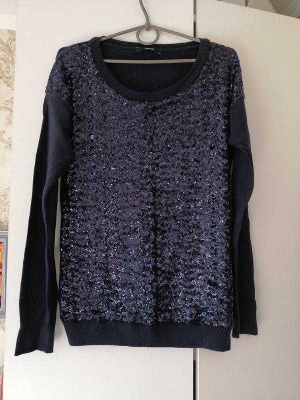 Свитер George, размер 10 (38)(М,L) в отличном состоянии. Красивый. Пайетки только в передней частм. Цвет темно синий. Длина 64см,ширина полу обтем в области груди 52см,длина рукава от плечевого шва 55см.