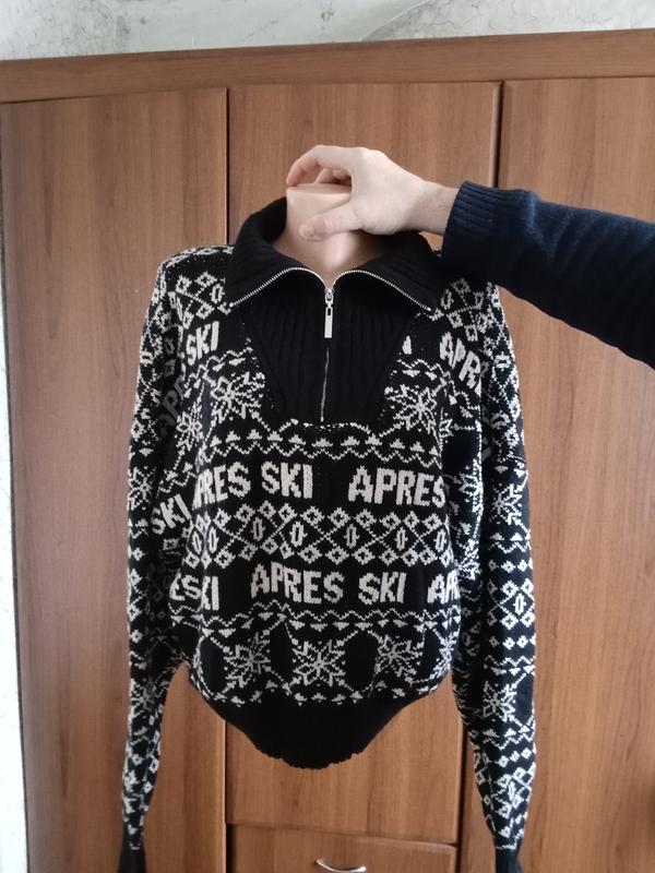 Укороченный с модным воротником на молнии свитер симпатичной расцветки, в отличном состоянии, без дефектов, без кошлатостей, размер соответствует действительности, роскошный длинный спущенный рукав, пойдёт на рост до 175см, рукав 54(спущенный), пог 63, по низу 50, длина по спине 55см.