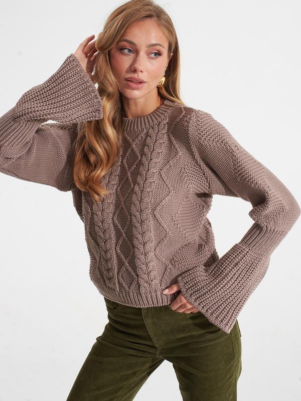 Свитер мелкой вязки с косами. Длинные рукава с широкими расклешенными манжетами. Изделие прямого кроя. Горловина и низ связаны резинкой. Размеры: 44-46, 48-50 Доставка: 💙 Укрпошта (повна передплата) 💛Новая Почта (полная подписка) ✨Отправка 2-3 рабочие дни 🌿Есть возврат и обмен
