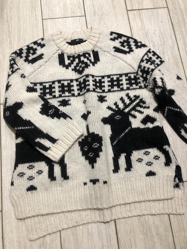 Очень теплый свитер свободного кроя. Рукав 7/8. Разрезы по бокам. Размер ХС. Дл-62 см задняя часть, 57см передняя.пог-43см, рукав-57см до ворота. Состояние идеальное