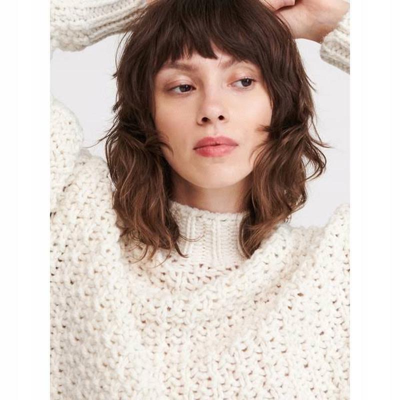 надет пару раз Пуловер свободного кроя из мягкого трикотажа. – высокая горловина – горловина, низ и манжеты оформлены резинкой – спущенный плечевой шов – трикотажное полотно крупной вязки : 90% АКРИЛ, 10% ПОЛИАМИД