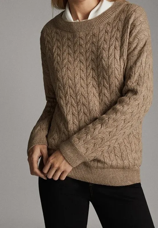 Шерстяной свитер в косы. с блестящей нитью.Красивый шоколадный цвет как на каталожном фото.