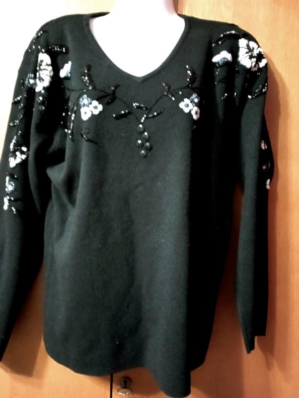 кофточка с в-образным вырезом горловины украшена узором из бисера выглядит очень нарядно, отличное состояние ткань имеет шерстяную нить пол окружности груди 62 см длина рукава от горловины 75 см от линии плеча 60 см плеча Жукут припущенное