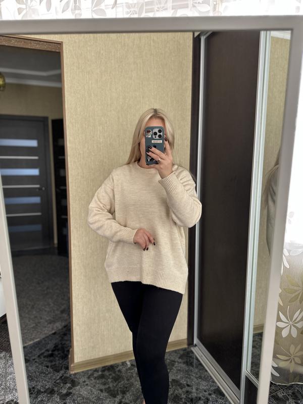 Свитер на модели ог 90 вот 72 ос 105 сидит свободно, теплая и нежная на ощупь песочного цвета