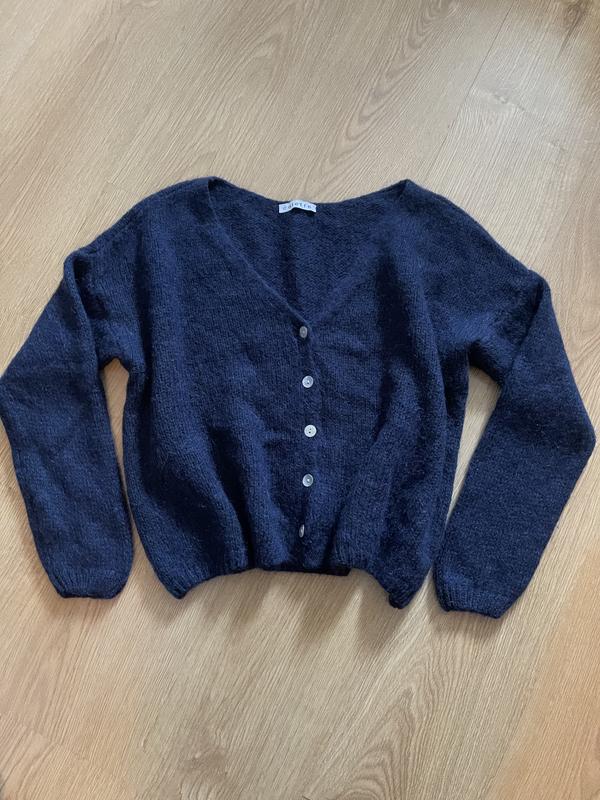 Свитер с шерстью 30% Очень похоже на ручную вязку Легкий Синий цвет На размер s/m Трендовый фасон Есть такой еще в сером цвете