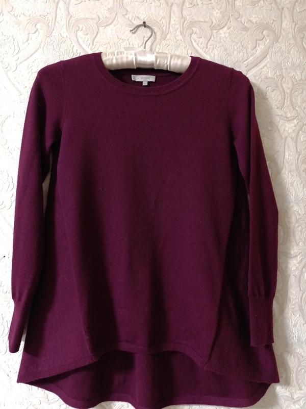Светр, модель подовжена. Состав 100 шерсть мериноса. Замеры: пог 48, пот 52, поб 64, длина рукава 62, ширина плеч 39, длина по спине 75, длина по переду 63.