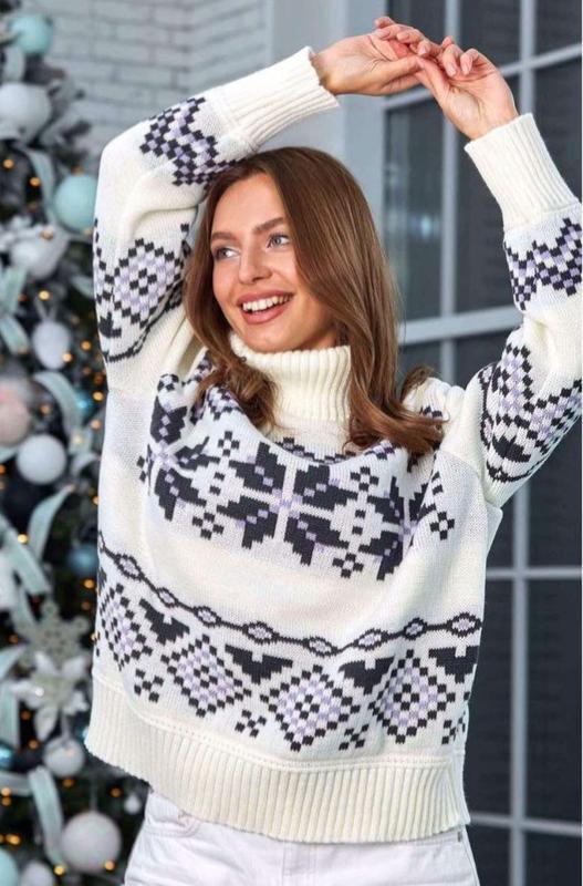 ❄️ Створюємо зимовий настрій разом із стильним светром! ❄️ Цей светр❤️ з традиційним орнаментом не тільки теплий, але й надзвичайно стильний.🌟 Ідеальний вибір для святкових зустрічей та затишних вечорів біля ялинки.🌲 Завдяки яскравим візерункам він легко поєднується з будь-яким гардеробом.😘 ✨ Переваги: ➖Комфортний високий комір для захисту від холоду! ➖М'яка та приємна до тіла тканина! ➖Святковий дизайн, що додає атмосфери! Створюйте незабутні зимові❄️ образи з цим затишним светром🧶! Підходить як для дому, так і для виходів у світ.👌 Теплий светр ❤️ із Норвезьким орнаментом "Берта"🌸 ➖Матеріал В'язаний🧶 трикотаж ➖Країна виробник Україна🇺🇦 ➖Розмір oversize 44-50 ➖Склад пряжі 50% вовна, 50% акрил ➖Сезон Зима, Весна, Осінь Зріст дівчини на фото168 см Довжина по спинці 64 см Довжина рукава60 см