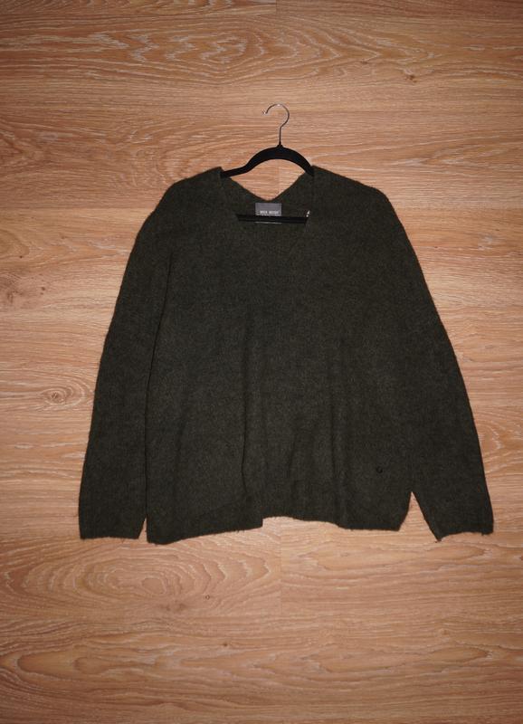 дефектов нет Материал: 33% альпака 33% вовна 29% полиамид 5% еластан Замеры: плечи 52 см, ПОГ 71 см, низ 65 см, Рукав реглан 79 см длина 62/68 см