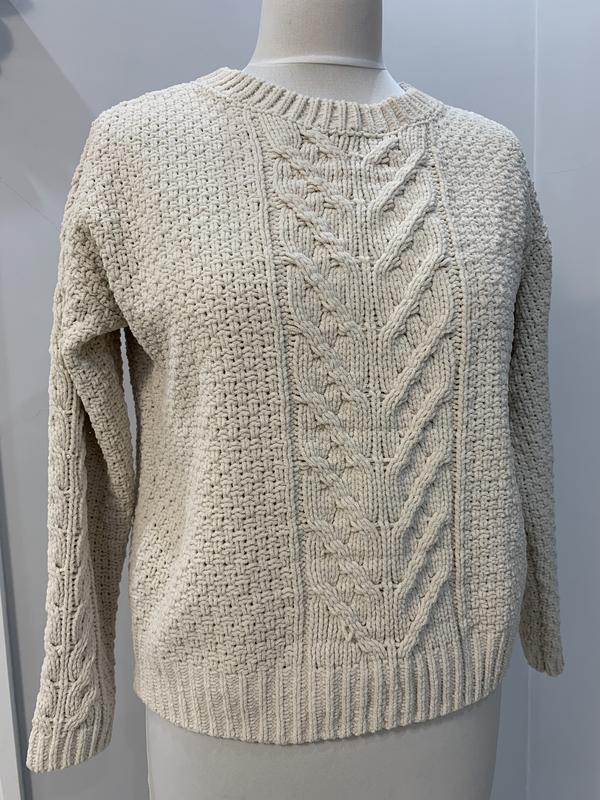 Плюшевый велюровый свитер цвета слоновой кости. Фирма: Primark Стан новой вещи.Размер: на этикетке указан XS.Йде как оверсайз : Бежевый Длина 57 см ПОГ 52 см ПОТ 50 см Рукав опущенный 49 см Плечи 56 см