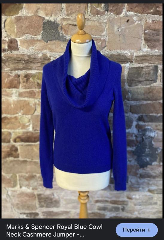 Кашемировый свитер джемпер в ярком насыщенном синем цвете - королевский синий, электрик Идеальное состояние Размер S Плечи 36 Рукав 60 Грудь 45 Ширина низ 38 Ширина низ резинка 34 Длина 57