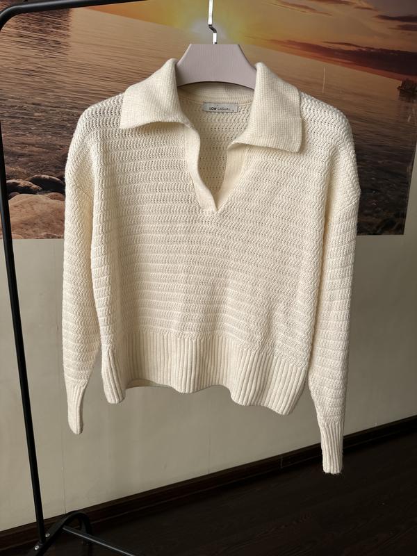 Теплое, актуальное вязаное поло. Цветовое сливочное масло. Имеет мягкую линию плеча. Длина рукава от воротничка 70 см. Длина изделия 50 см. ПОГ 57 см.