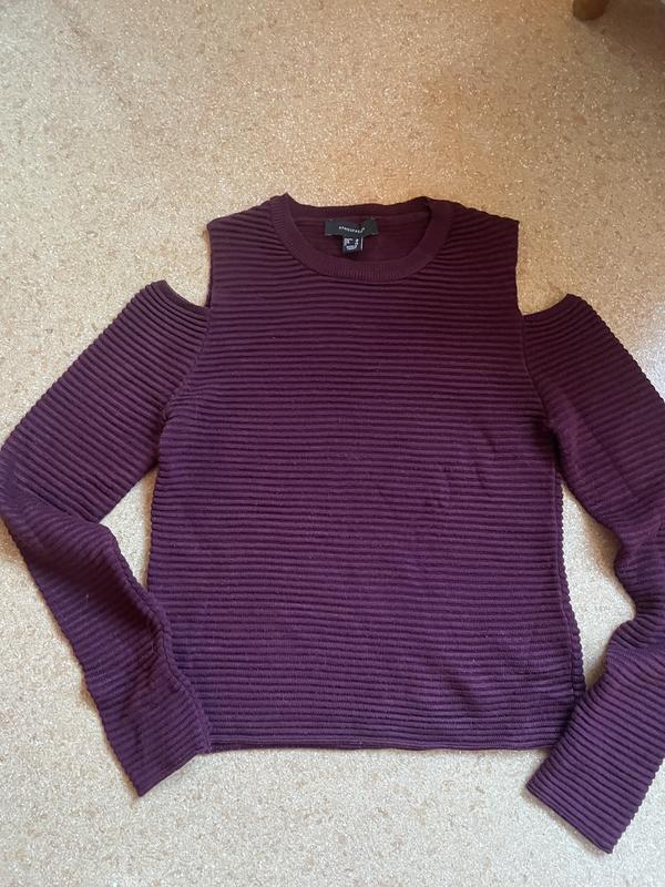 Модный трикотажный свитерок с открытыми плечами