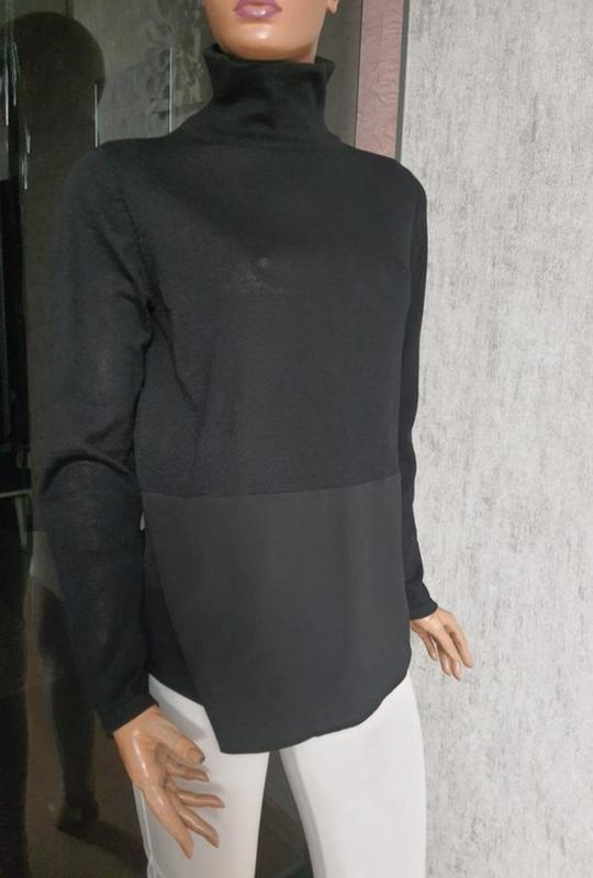 Стильный комбинированный гольф WOMAN LIMITED. Верх из вискозного трикатажа, низ из плотного атласного полотна. Размер 38, но можно на 40,42 г. Пог 54+ Поб 53 Длина 67 Длина рукава 64 Состояние отличное, без нюансов. Заходите на мою страницу, много интересного).
