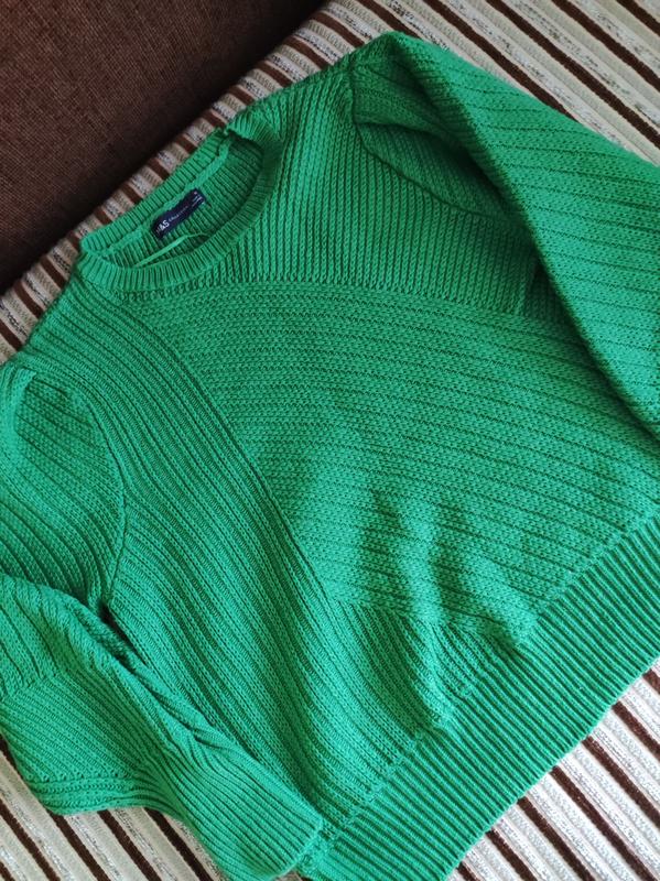 красивый зеленый свитер с большими рукавами, одевала раз, без дефектов. замеры: длина 57, рукав 59, пг 47