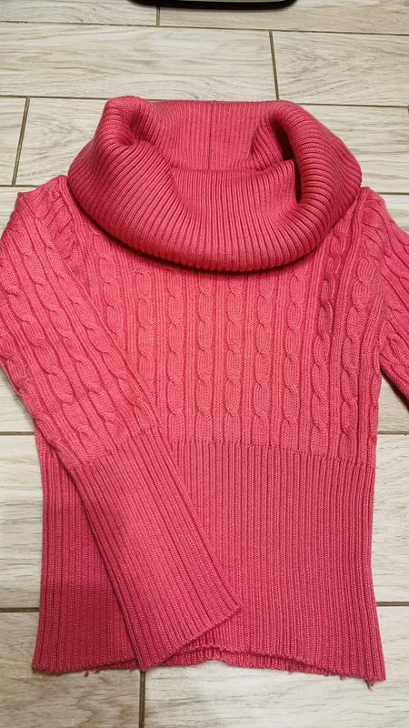 Светр у «косичку» Состояние новой вещи (без бросок, но одевался только пару раз) 50% вовна, 50% акрил Мягкий и теплый, приятный к телу Модель укороченная (длина спинки - 50 см) Горловина декорирована большим воротничком-«хомут», который по желанию можно также надевать на плечи (модель «кармен») Размер S-M Рукав 56 см, на высоком манжете пог 45 см, но очень хорошо тянется (до 55 см)