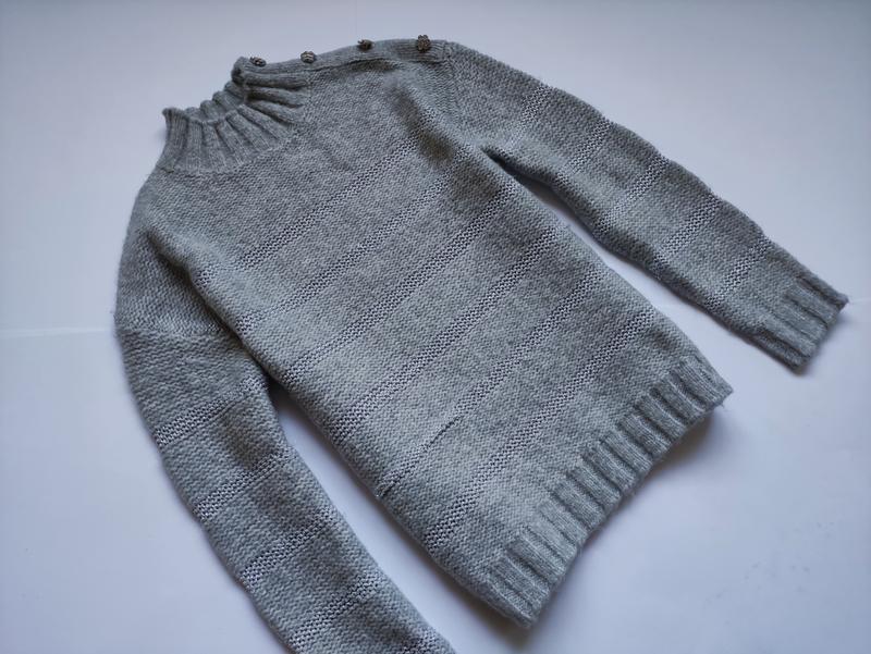 Теплий светр Размер указанный 10 Подойдет на S-M-L ПОГ - свободно, в разложенном виде 49, тянется до 52, ПОТ - 49-51, ПОБ - 49-51. Длина 56. 49% акрил, 42% поліестер, 9% металічна нитка Состояние 5-, при ношении 5