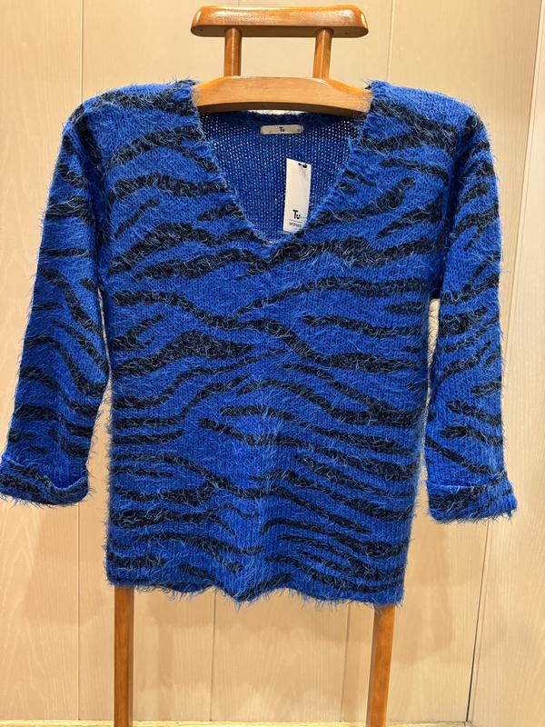 В наличии красивый свитер фирмы TU. Размер указан 12, но красивей сядет на 10. Состав: 85% акрил и 15% нейлон, нитка очень мягенькая и приятная к телу, хорошо тянется. ПОГ-50 и ещё тянется, длина-61, длина рукава от ворота-58, ширина по низу-50 и ещё тянется.
