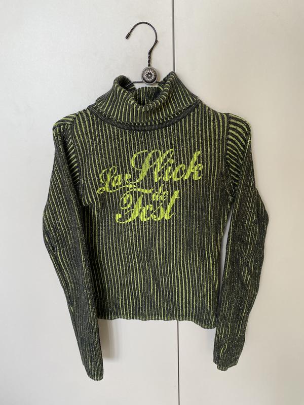 Свитер женский в рубчик, зеленого цвета. Размер М, с горлом