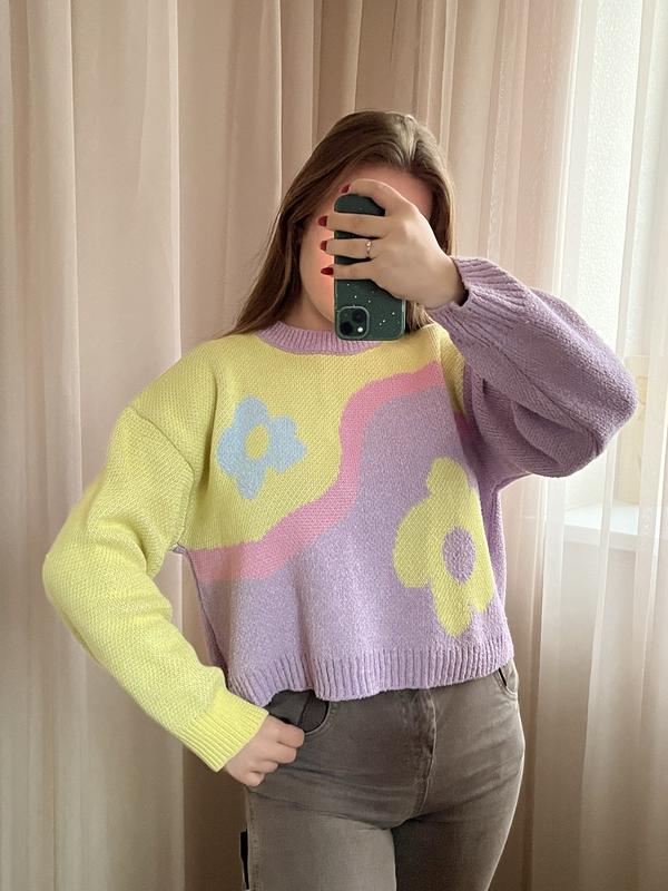 Вʼязаний светр оверсайз крою. Дуже якісна вʼязка. Приємні кольори. Розмір S-L. Одягнуто на L. Заміри: плечі 55, пог 57, довжина 50