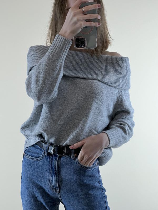 Серый свитерик на спущенные плеча🤍 В идеальном состоянии❗️ Размер С-М По деталям в дырект💌