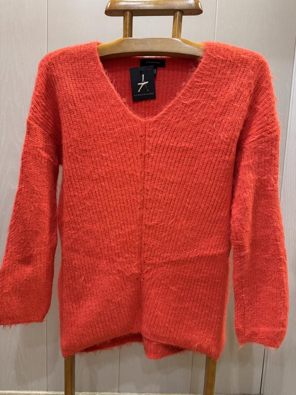 В наличии красивый свитер фирмы ATMOSPHERE. Размер указан М 10/12. Состав: 63% нейлон и 37% акрил...нитка очень мягкая, тёплая и приятная к телу, хорошо тянется. ПОГ-51+ещё тянется, длина-64, по спинке немного длинней-71, плечи приспущенные.. длина рукава от ворота-69, ширина по низу-48+ещё тянется.