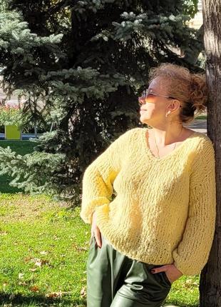 Оооочень классный свитер "Облако" 😊 Невероятно приятный к телу, мягкий, лёгкий, тепленький❤️👍 Можно назвать эго - мягкие объятия❤️ В составе альпака, меринос. В зависимости от размера- можно носить как оверсайз. Размер универсальный- от 48 до 52 Замеры в разложенном состоянии: Плечо спущенное 18, ширина 58+, длина - 60, рукав 45 В свои вязаные произведения я вкладываю тепло и добрые пожелания 😊❤️❤️❤️ Смотрите все мои объявления! Найдёте много интересных вещей по приятным ценам ❤️