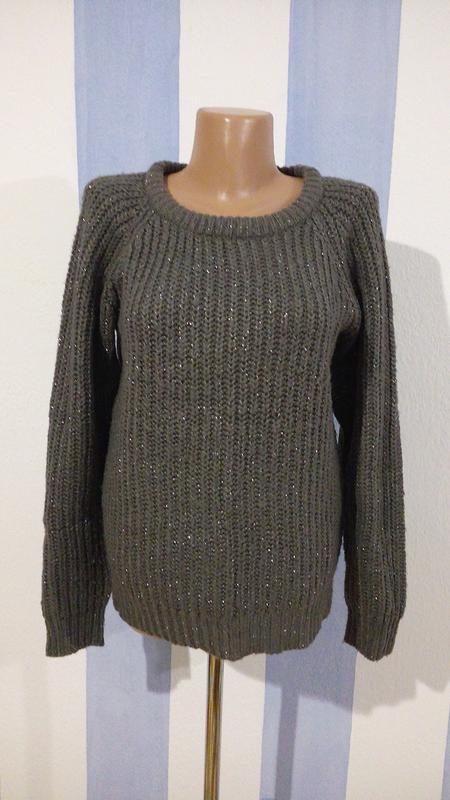 З люрексом,бірок з розміром та складом тканини немає, по досвіду розмір С,М,склад акрил.Пог-50( в стані спокою), низ-49-50( розрізи), рукав-68( від горловини), реглан, довжина-60-62.