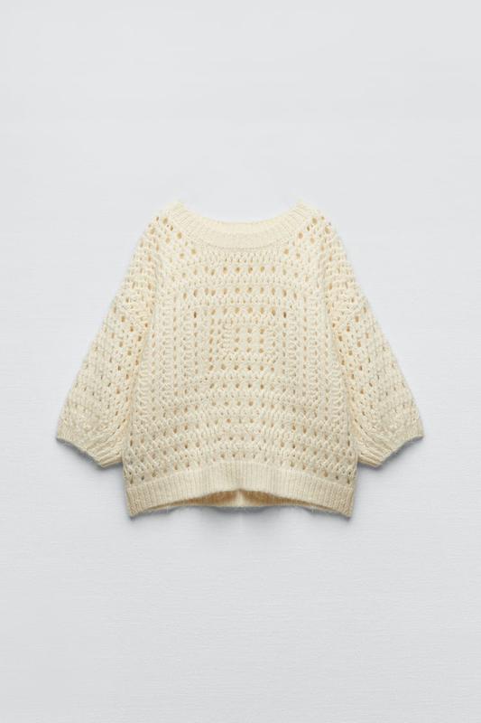 Ажурный свитер zara оригинал ажурный свитер ZARA оригинал новая коллеция 67% АКРИЛ · 23% ПОЛИЭСТЕР · 10% ПОЛИАМИД Открытый трикотажный свитер с круглым воротником и короткими рукавами. СЕРОВАТО-БЕЖЕВЫЙ ЦВЕТ